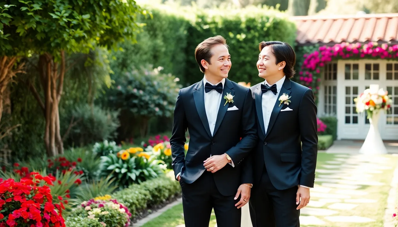 The ceremony took place in a picturesque garden in California, creating a serene atmosphere that reflected the couple’s love. Lush greenery enveloped the guests, enhancing the romantic setting. Floral arrangements adorned the venue, showcasing a vibrant mix that represented their style. The intimate nature of the gathering allowed for deeper connections with close friends and family. Personal touches, like custom vows, highlighted their unique bond and shared experiences. Shared stories from their journey gave guests a glimpse into their life together, making the event feel warm and personal.